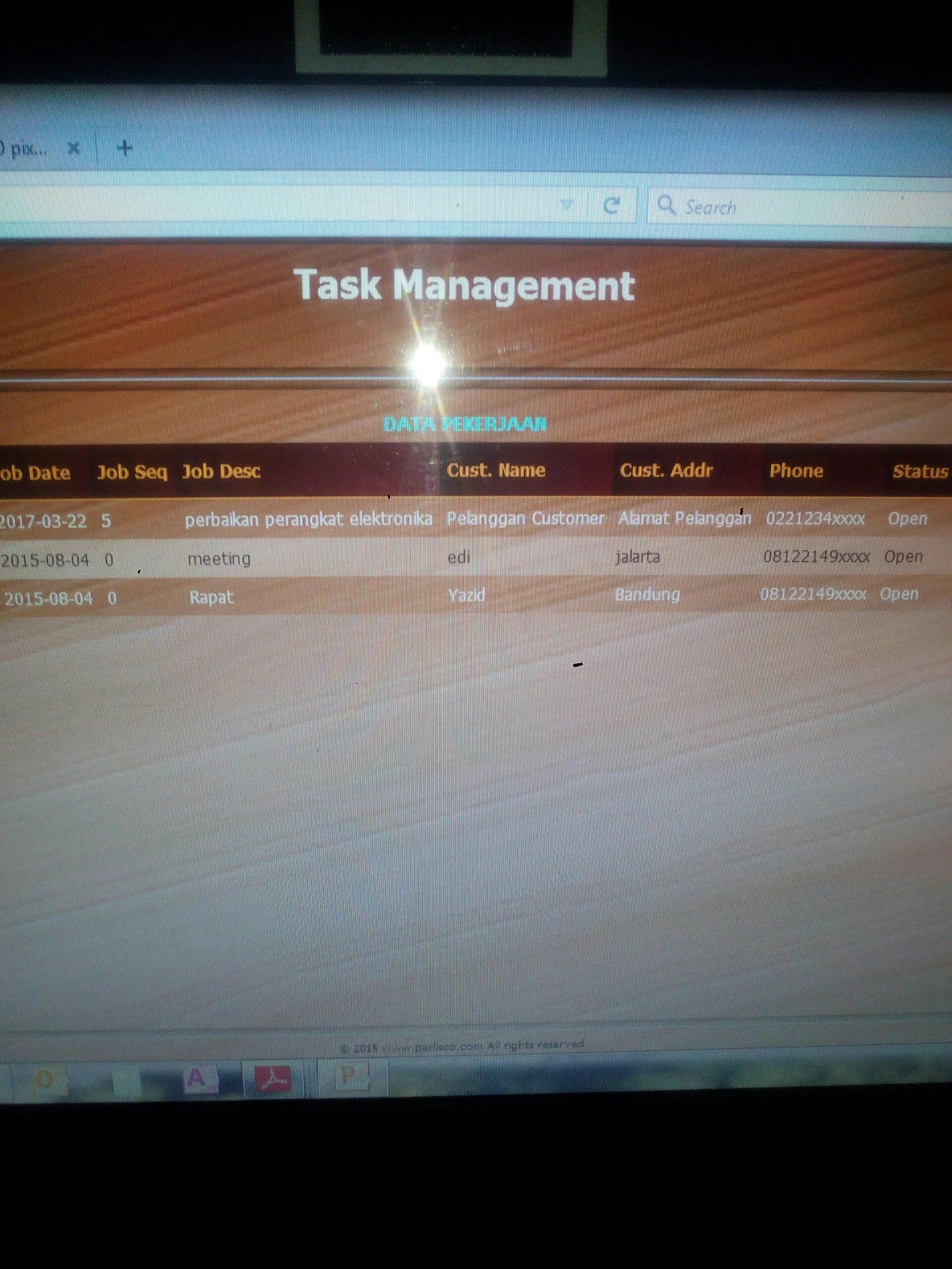 | 6 | yazid | 2019-01-15 Closed | Meeting di jl, Paus | PT. ABCDEF catatan pembicaraan | Location: 2019-01-15 11:15:06, NET X=106.891410, Y=-6.197702, Z=?, r=800.0 Address#1: X=106.89123889999999, Y=-6.197735799999999 ID:Indonesia Daerah Khusus Ibukota Jakarta, Kota Jakarta Timur, 13220 East Jakarta, Terminal Bus Rawamangun | ![]() | ![]() | 20KB Play | 49KB Play |